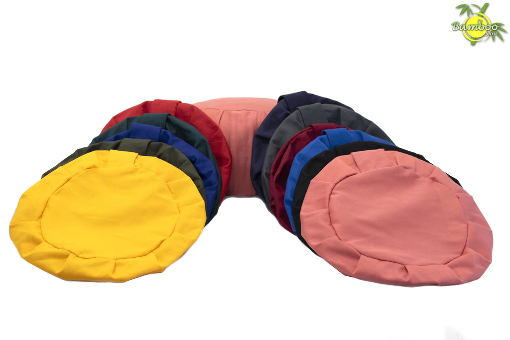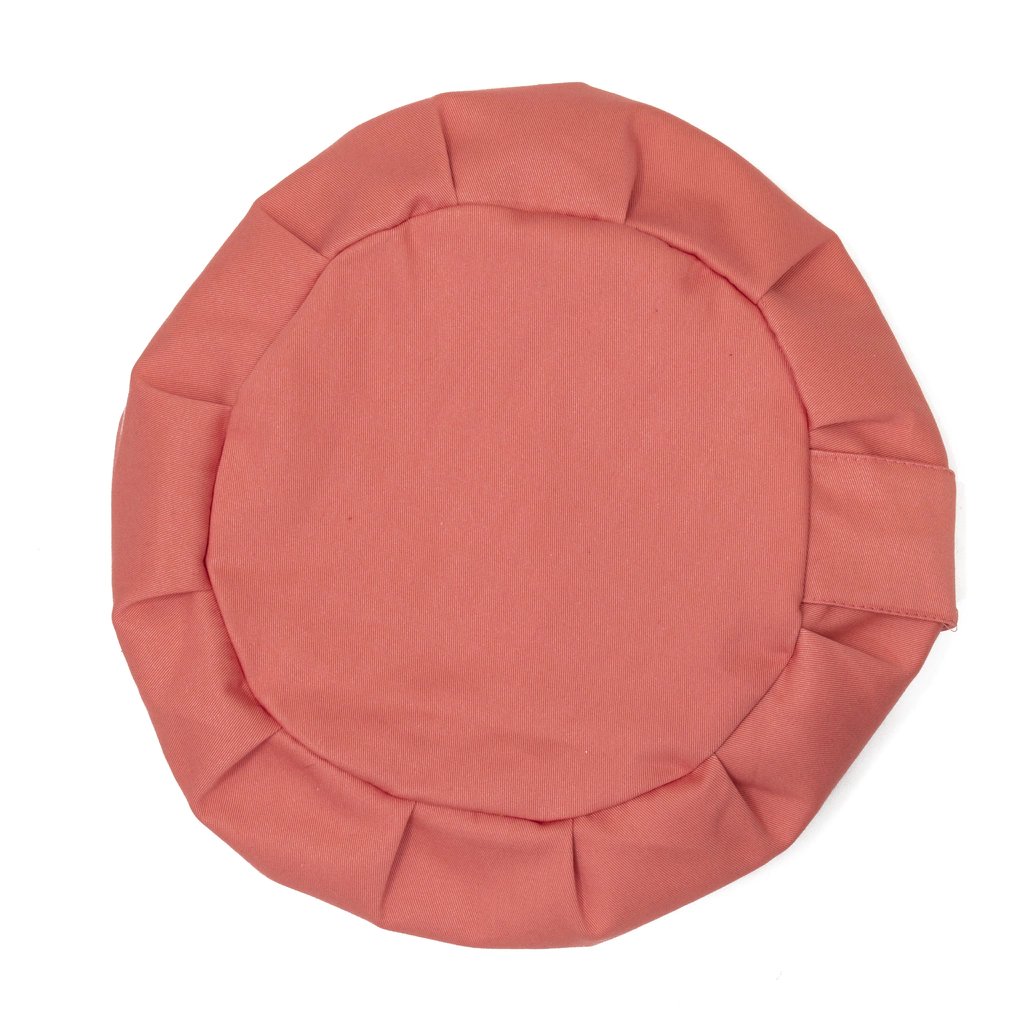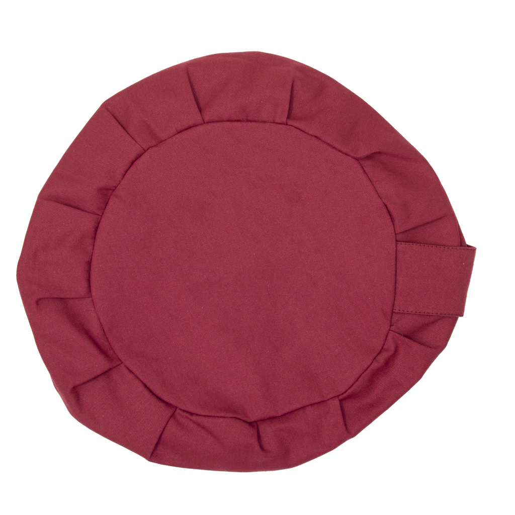 La funda del Zafu, está realizada en suave gabardina de algodón 100%, con pliegues alrededor que le dan la forma característica.