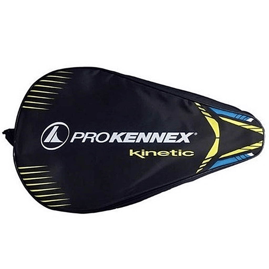 Funda térmica para paleta de pádel que combina los colores negro, blanco, amarillo y celeste. Características principales: acolchonada, cierre resistente, correa ajustable.