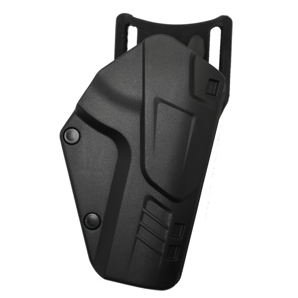Fundas Houston, inyectadas en polímero de alta resistencia, nivel de retención 2 para mayor seguridad. Con botón superior. Sistema rotativo 180º ajustable, pasa cinto paleta. incluye llave allen.