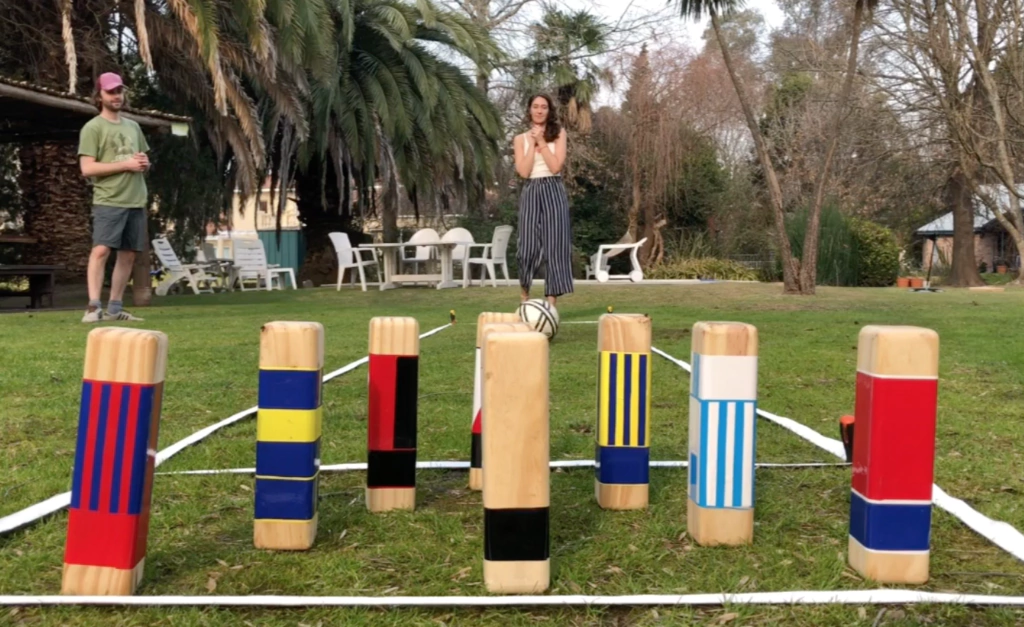 Cantidad de Pines por Juego:10 unidadesDimensiones de Pines:25cm de alto.Grafica:Vinilo ImpresoKit:Incluye bolsa y cintas perimetrales