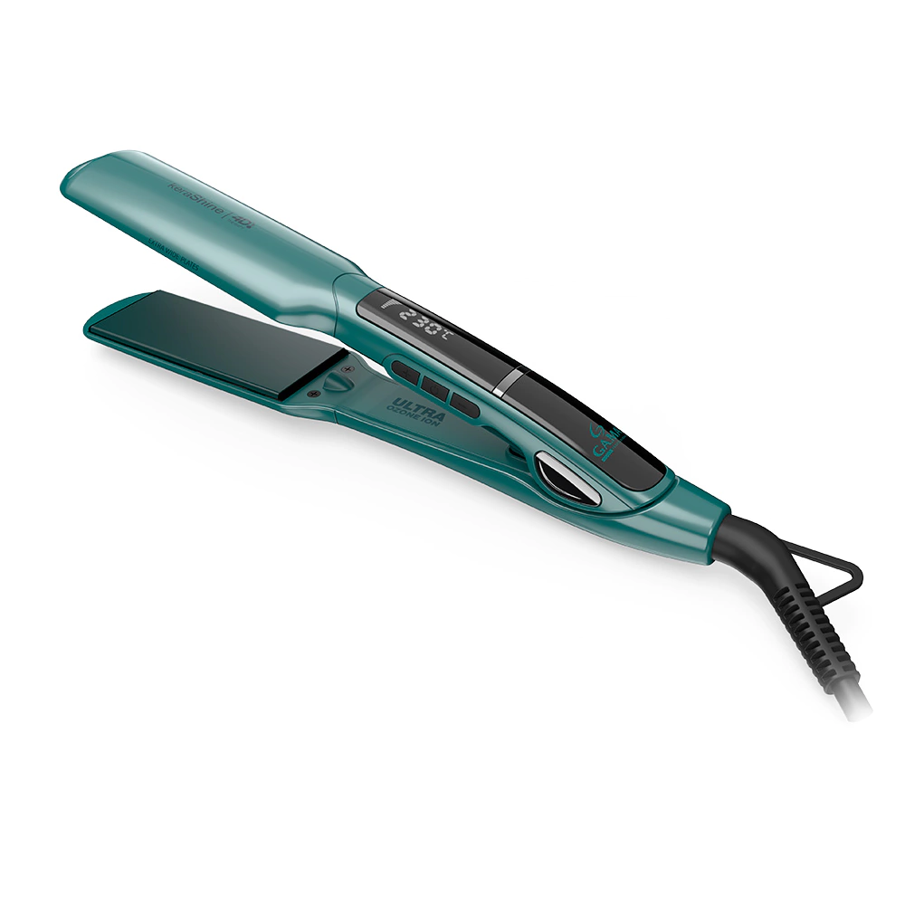 LA PLANCHA DE PELO ALISADORA X-WIDE DIGITAL KERASHINE 4D TIENE SUS PATINES RECUBIERTOS DE TECNOLOGÍA  MICRO-SHINE, LA CUAL PROVEE PIGMENTOS DE BRILLO EXTRA AL CABELLO, POTENCIANDO LA ILUMINACIÓN NATURAL DEL MISMO.LA KERATINA ES PARTE DE LA ESTRUCTURA NATURAL DEL CABELLO, SE DICE QUE EL CABELLO ES UNA FIBRA DE KERATINA, LA CORTEZA (EL 80% DE LA ESTRUCTURA CAPILAR) ESTÁ COMPUESTA PRINCIPALMENTE DE ESTE COMPONENTE, COMO FUNCIÓN PRINCIPAL ES LA ENCARGADA DE APORTARLE RESISTENCIA AL CABELLO Y ELASTICIDAD.A PARTIR DE DIFERENTES PROCESOS QUÍMICOS O MECÁNICOS EL CABELLO PUEDE SUFRIR UNA PÉRDIDA DE KERATINA Y VOLVERSE MÁS SENSIBILIZADO, VISUALMENTE OPACO, POROSO.ESTA HERRAMIENTA TAMBIÉN TIENE TECNOLOGÍA 4D THERAPY, TECNOLOGÍA CON OXÍGENO ACTIVO, EL CUAL DESCONGESTIONA EL FOLÍCULO PILOSO, MEJORA EL MEDIO AMBIENTE DEL CABELLO.CUENTA CON UN DIPLAY DIGITAL QUE TE PERMITE CONTROLAR Y PROGRAMAR LA TEMPERATURA DE 150 A 230 GRADOS.SUS PATINES EXTRA ANCHOS DE 40 X 100 MM TE PERMITEN ALISAR MAYOR CANTIDAD DE CABELLO EN MENOS PASADAS Y, AL SER FLOTANTES, FACILITAN EL DESPLAZAMIENTO DE LA PLANCHITAADEMÁS, TIENE UN TIEMPO DE CALENTAMIENTO DE 50 SEGUNDOS Y POSEE UN CABLE ROTATIVO DE 360 GRADOS QUE EVITA ENREDOS Y FACILITA LA MANIPULACIÓN