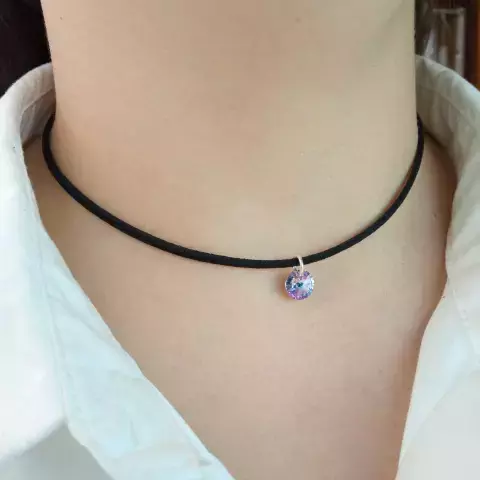 Gamuza negra simple con dije cristal sw violeta tornasol