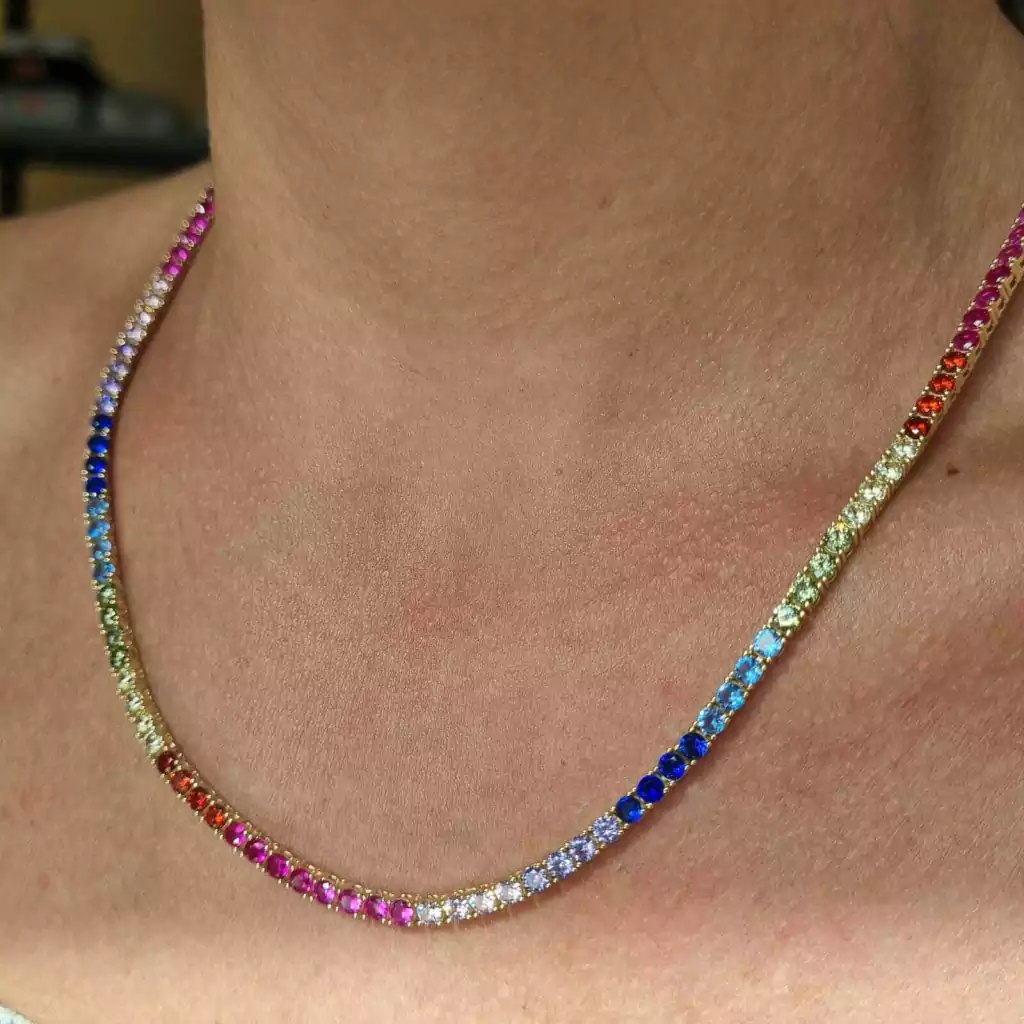 Collar de Plata 925 y cubics con baño de oro.Largo de 45 cm.