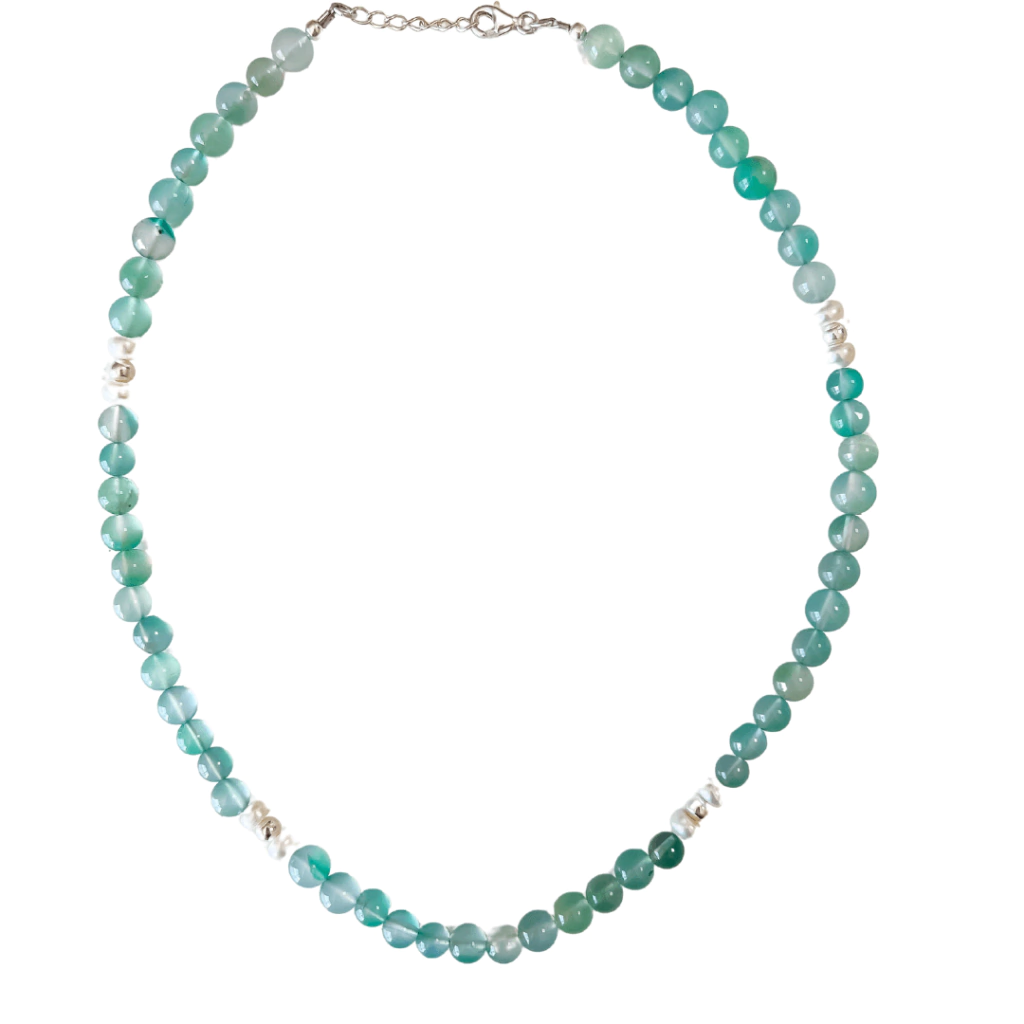 Gargantilla NilaLO QUE TENES QUE SABER SI O SI!- Todos nuestros productos son de Plata 925. En el caso de tener algún detalle en Oro o ser de otro tipo de metal siempre se aclara en la publicación.- Gargantilla de Aventurina y Perlas regulares, combinada con bolitas de plata 925, de 45cm. La tendencia de esta temporada.Todo es preparado con packaging listo para enamorar.Cómocuidar tu Pieza de Plata:Lo que sí:Guárdala de forma individual en su bolsita original.Si ves que está perdiendo su brillo límpiala con una gamuza. La plata puede ponerse negra cuando el pH de la piel de una persona es un poco más ácido de lo normal. Esto puede ser algo permanente (y normal) o ser resultado de la ingesta de algún medicamento que altere momentáneamente el pH.Revisa los cierres regularmente.Trátala con amor.Lo que no:Intenta no golpearla, exponerla al cloro o a la transpiración. Puede que le hagan perder su brillo.Evita el contacto con productos de limpieza.Pero tranquila! Si se te llega a opacar, sólo hay que pasarle su paño de limpieza y vuelve a estar como nueva.Consejo:cada 20 días, en ese momento mientras ves tú serie favorita o estás tomando un mate en el sillón, pásale el pañito y así conservas tu joya impecable.Los productos tienen garantía?Si! Otorgamos garantía por defectos de fabricación y manufactura. La garantía no incluye roturas por mal uso, ni tampoco cubre el oscurecimiento de la pieza por el pH de la piel o uso de productos.
