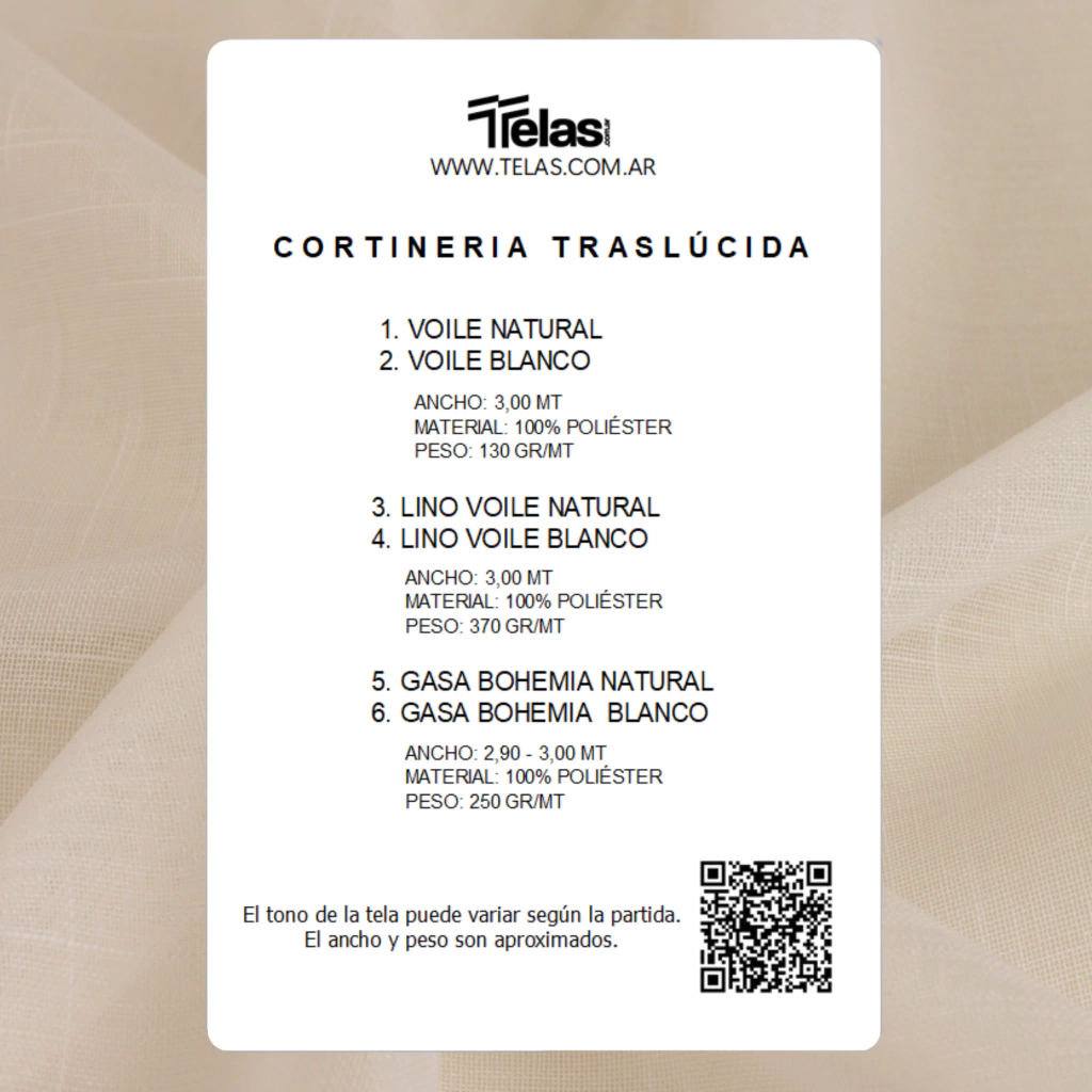 Gasa Bohemia Blanco (Ancho 2,90 Mts)