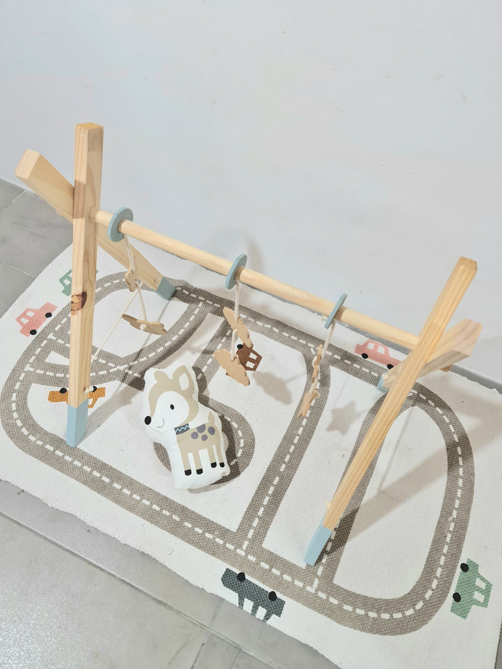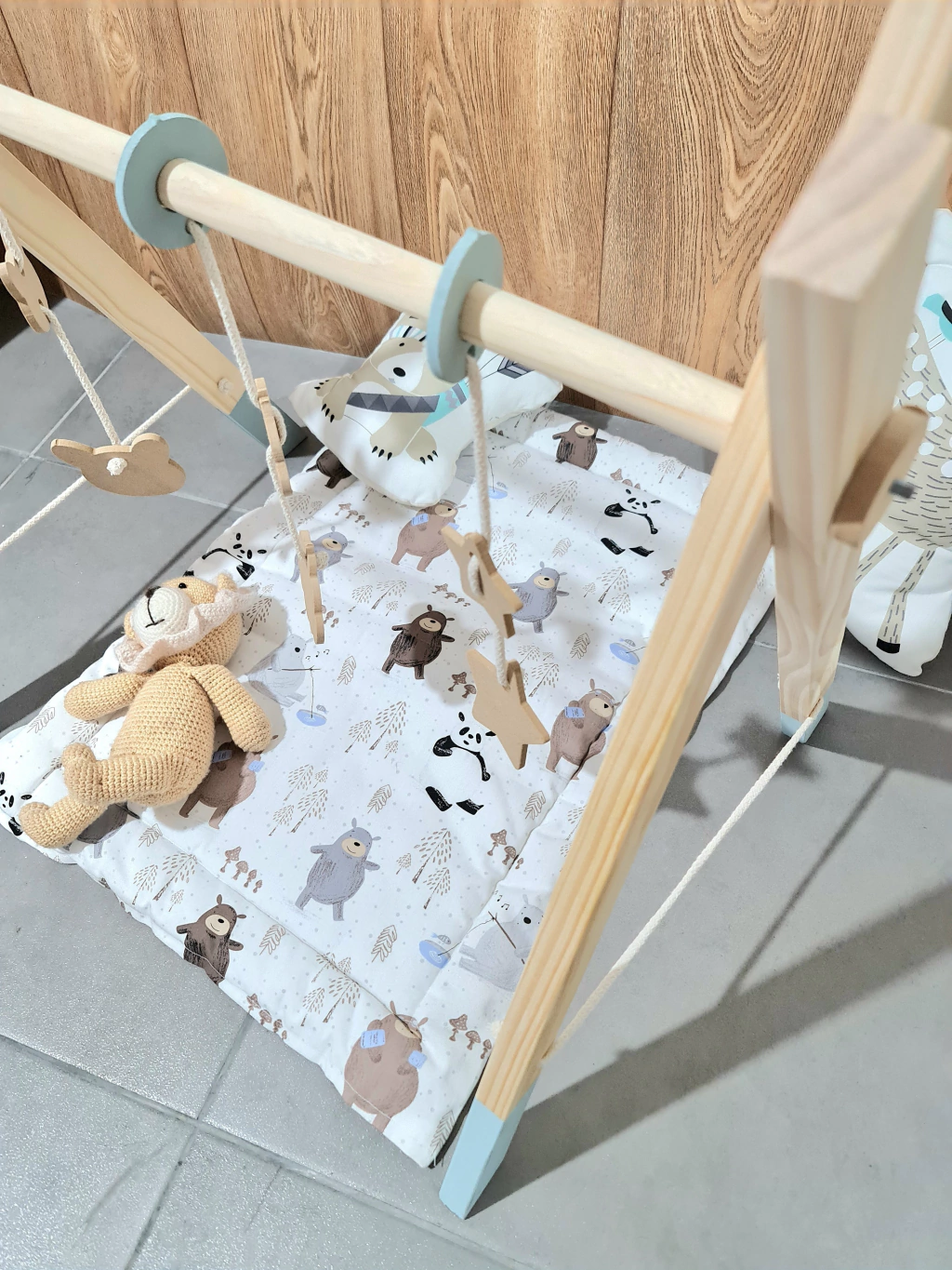 Combo gimnasio para bebés Montessori + Playmat acolchada. (El estampado de Playmat puede variar en base a disponibilidad)