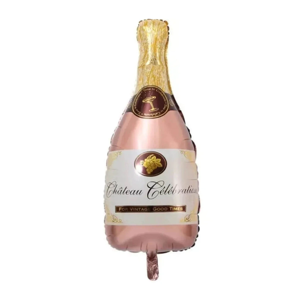 Globo botella rosa goldMedida: 90 cm largo aprox