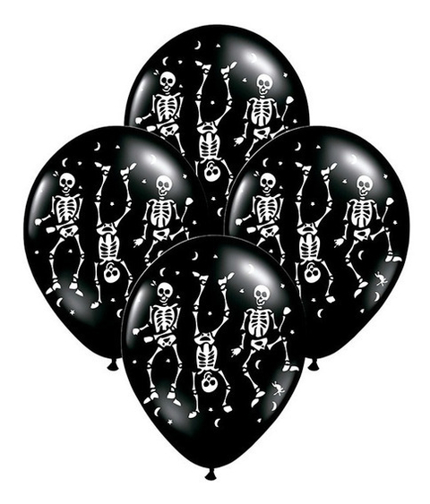 GLOBO ESQUELETOS NEGRO IMP. BLANCO X 25 UN.