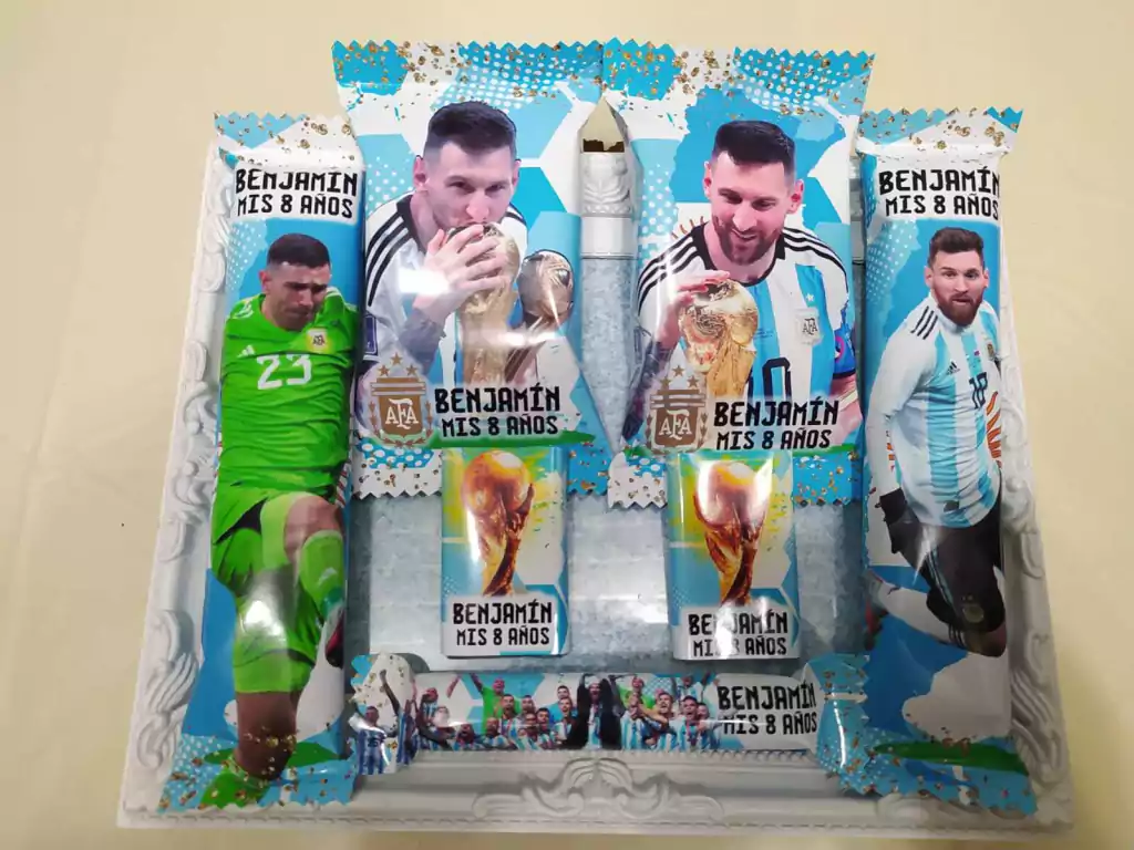 Golosinas Personalizadas para 10 chicos Messi Argentina campeon del mundo