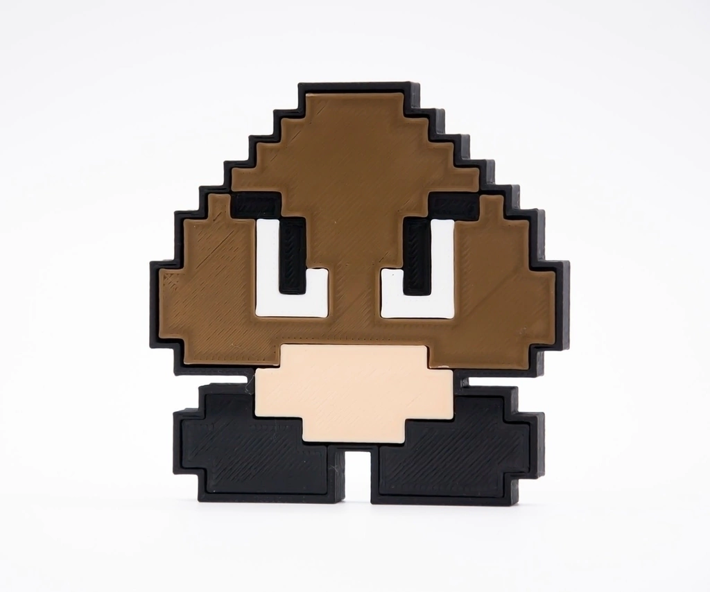 Goomba Mario Bros! Mide 9cm de alto.Formato puzzle para armarLa mejor calidad de impresión 3D del mercado (por los detalles y maquinas de primer nivel)Si el producto se encuentra sin stock, podes escribirnos para reservarlo (demora 10 - 15 dias máximo)