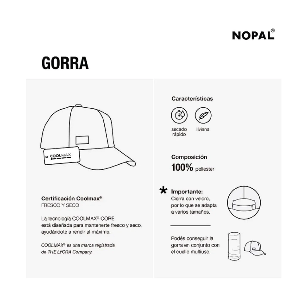 La gorra de Nopal está fabricada en tela con tecnología COOLMAX, lo que permite mantenerte aún más fresco y seco a la hora de vivir todas tus aventuras :)