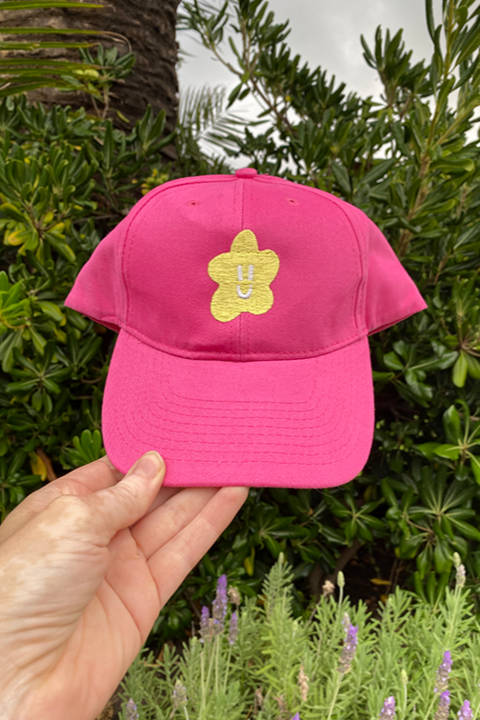 Gorra F fucsia con amarilloGorra de gabardina bordada con gancho metálico ajustableProducido en pequeñas cantidades por LoquehaceRuku