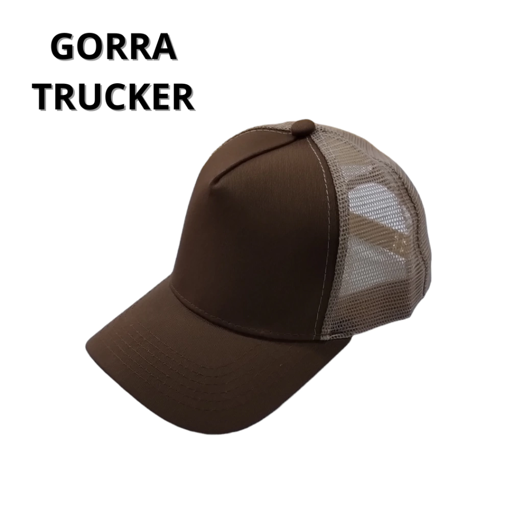 GORRA TRUCKER DE GABARDINA COLOR BEIGE FRENTE MARRON