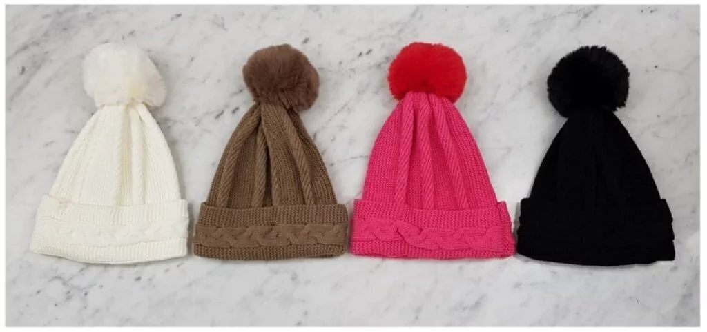 Gorro de Lana con Trenza Horizontal con Pompón de Lana