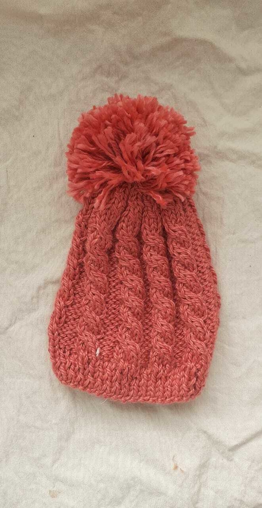 Gorro tejido a mano, con trenza. Confeccionado en lana sedificada. No pica. HipoalergenicaMedidas aprox:Talle 2: 6 a 12/18 meses. Circunferencia 34cm, cede hasta 45cm.