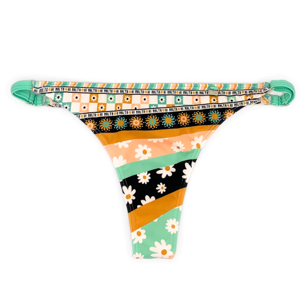 Bombacha colaless estampada con correderas regulables en los laterales que permiten ajustar el calce a tu gusto. Confeccionada en Lycra certificada.