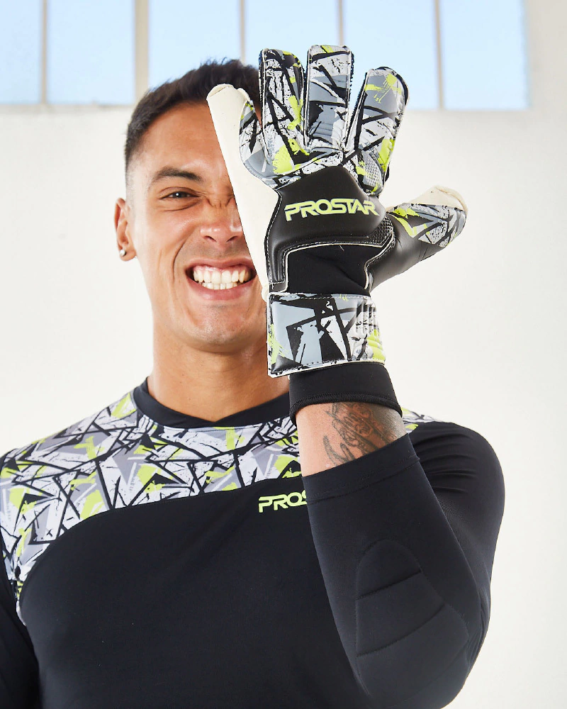 MOLDERIA “DUO AROUND”: EL LATEX DE LA PALMA SE EXTIENDE HACIA EL DORSO. DANDO UNA SENSACION DE ENVOLTURA DE LA MANODORSO CON RELIEVEZONA DE “SHOCK ABSORTION” DISEÑADA PARA UN MEJOR RECHAZO DEL BALONMUÑEQUERA DE “SIMIL NEOPRENE” ELASTIZADA E INTEGRADA AL CUERPO DEL GUANTE, FORMANDO UNA SOLA PIEZACINTILLO DE AJUSTE POR VELCROPALMA DE LATEX SUPERSOFT 3 MM