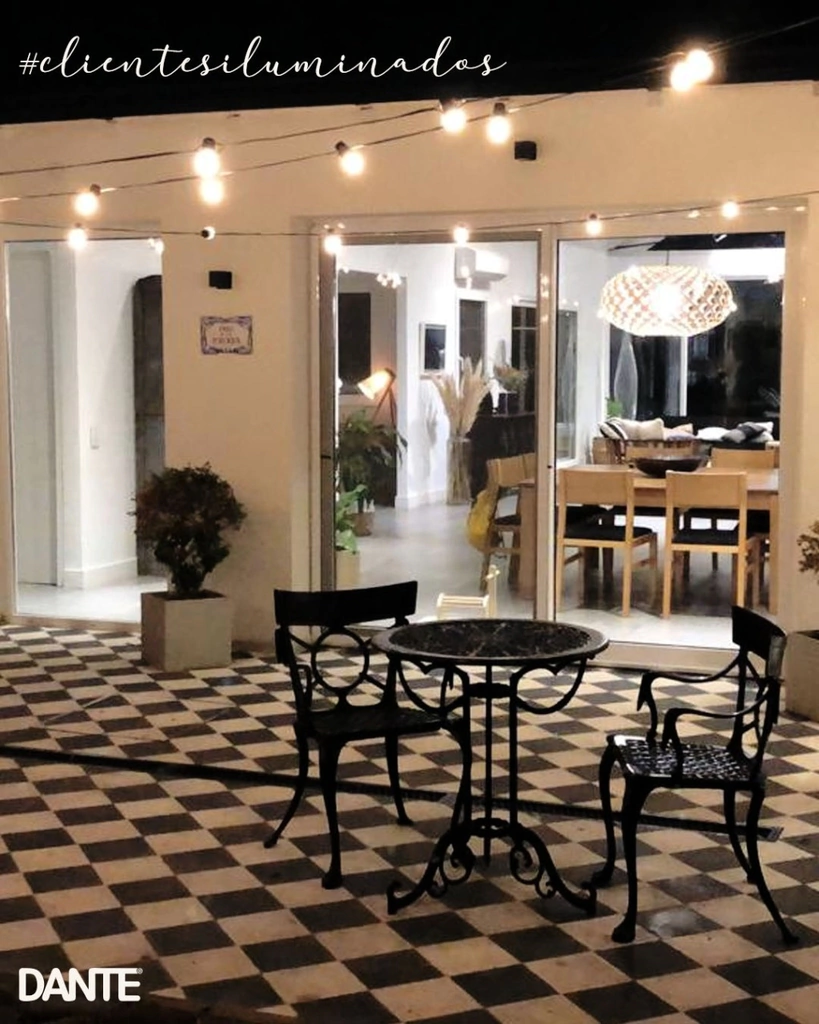 DescripciónGUIRNALDA DE LUCES PARA EXTERIOR PARA EXTERIOR O INTERIORMateriales: CABLE TIPO PARALELO , PORTALAMPARAS PLASTICO ** APTO INTEMPERIE.Color: NEGROAlimentación:220 VCATipo de soporte: TECHO, PAREDZócalo: E27- Vienen 2 portalámparas por metro (cada 50cm)- En un extremo tiene un enchufe- Son apto exterior, pero la conexión debe quedar protegida de la lluviaLos precios son sin lámparas5MTS = 10 PORTALAMPARAS10MTS = 20 PORTALAMPARAS15MTS = 30 PORTALAMPARAS20MTS = 40 PORTALAMPARAS