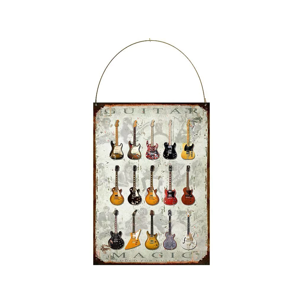 La chapa es de hierro y podés colgarla desde los agujeros que tiene en las puntas.