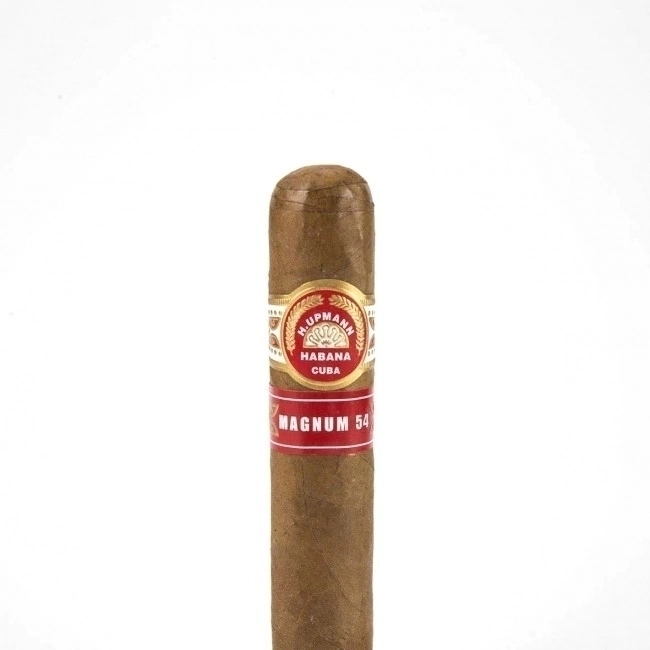 El H. Upmann Magnum 54 tiene el calibre de anillo más grande de todas las creaciones de Upmann. En Cuba tampoco se perdió la tendencia del mercado a ofrecer anillas más grandes. Su mezcla fue diseñada en el rango de cuerpo suave a medio y tiene aromas claros de naturaleza herbácea, amaderada y chocolateada. Con una longitud de 120 mm se puede esperar una duración aproximada de ahumado de media hora a 45 minutos. Por supuesto, la calidad habitual de Upmann también garantiza que el Magnum 54 tenga un tiro y quemado absolutamente satisfactorio.