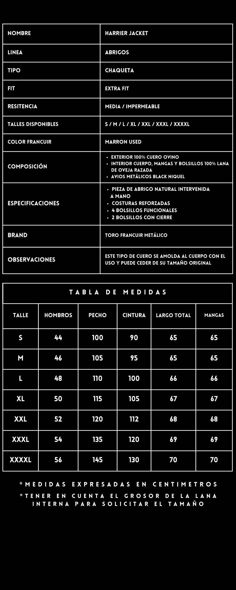 Campera de abrigo de corte extra fit confeccionada en piel de oveja razada premium. Impermeable levemente encerada y de acabado rústico. Cierres y herrajes metálicos dark silver.