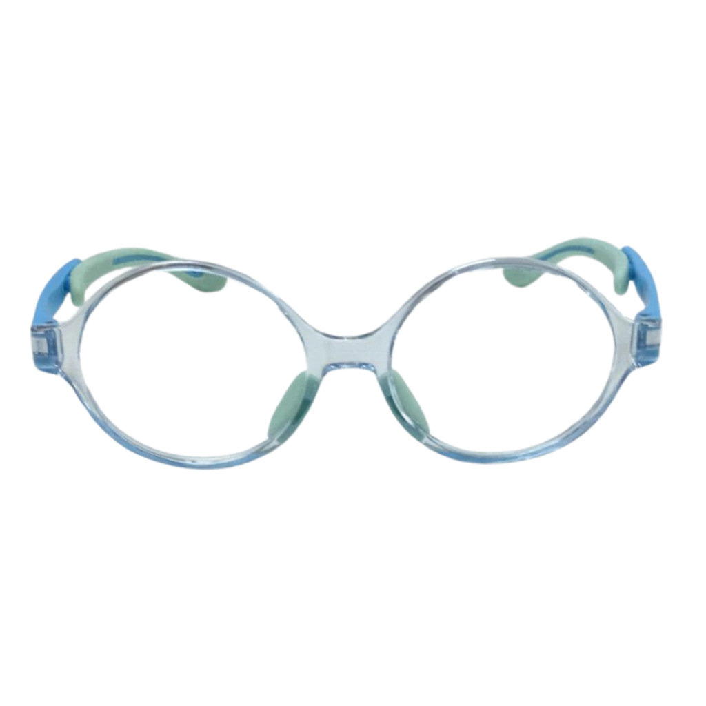 El frente del armazón es de TR90, un tipo de plástico liviano y flexible. Posee almohadillas nasales de silicona.