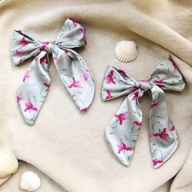 Hebilla francesa con moño en saten estampado con diseño exclusivo.
