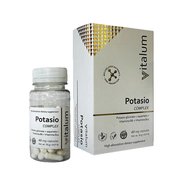 Este producto combina Potasio en formas de glicinato y aspartato, reconocidas por su elevada biodisponibilidad gracias a la quelación con aminoácidos. Estas formas del mineral aseguran una absorción y aprovechamiento óptimos. Adicionalmente, la incorporación de Vitamina B6 y Vitamina B12 no solo potencia la absorción del potasio, sino que también realza sus funciones biológicas, como el apoyo a la función muscular y al equilibrio electrolítico. Esta fórmula brinda un soporte completo para el bienestar general y celular.BENEFICIOS- Presenta una avanzada combinación de Potasio en formas de glicinato y aspartato, seleccionadas por su excepcional biodisponibilidad.- Utiliza la quelación con aminoácidos para garantizar una absorción y utilización máxima del Potasio por parte del cuerpo.- Enriquecido con Vitamina B6 y Vitamina B12, este complejo potencia la absorción del Potasio y amplifica sus beneficios a nivel celular.- Ofrece un soporte vital para la función muscular, optimizando la contracción y relajación muscular para un rendimiento físico mejorado.- Contribuye al equilibrio electrolítico, esencial para la hidratación adecuada y la función nerviosa.- El complejo es ideal para atletas, personas con un estilo de vida activo y aquellos que buscan mantener una salud cardiovascular óptima.- Ayuda a prevenir la fatiga muscular y calambres, comunes en dietas bajas en Potasio.- Este suplemento es una solución integral para el bienestar, proporcionando los nutrientes esenciales para mantener la vitalidad y salud celular.ESTE PRODUCTO NO SUMA PUNTOS BIENESTAR