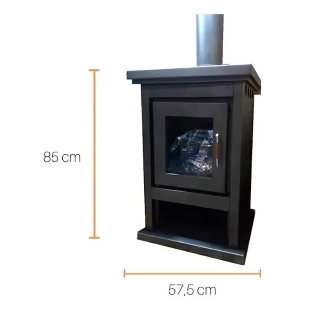 - Salamandra confeccionada en material acero carbono color gris, gasificada con leño 5500 cal; No requiere salida al exterior ni tiraje.