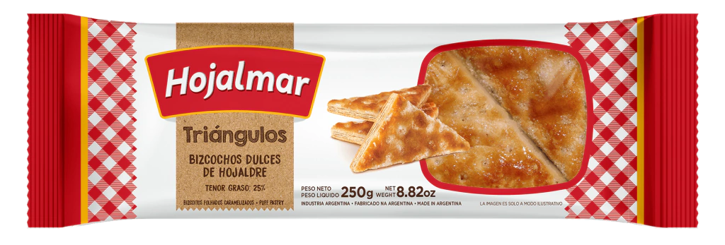 Descubrí las deliciosas galletitas Triángulos de Hojalmar, elaboradas con el mejor hojaldre. Cada bocado ofrece una textura crujiente que complementa a la perfección tu café o mate.