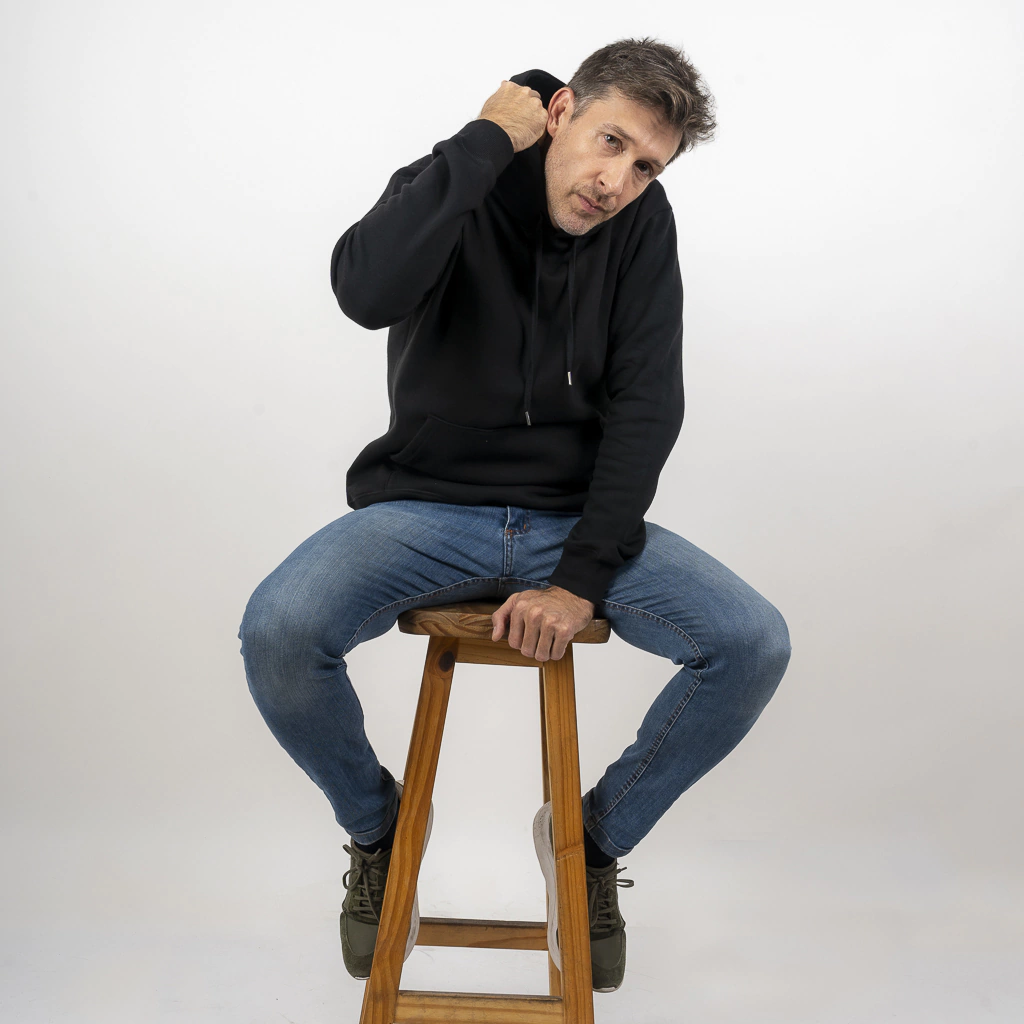 Buzo con capucha y bolsillo canguro delantero. Es una prenda cómoda confeccionada en rústico, ideal para la media estación. Viene con cordón negro con puntera metálica.