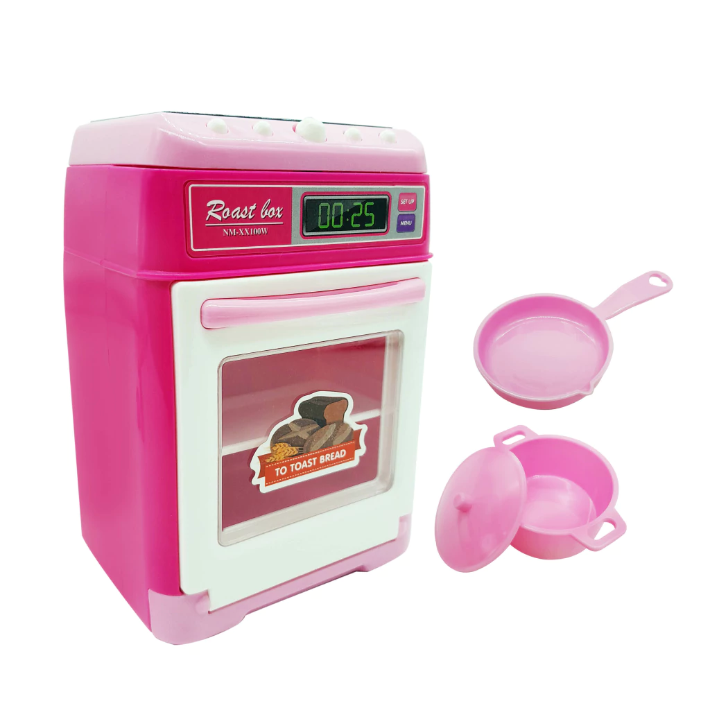 Horno Chico de juguete con luz en las dos hornallas de arriba y en el interior del horno, además posee sonidos varios de cocina. Incluye 1 sartén chica y 1 olla con tapa chica de plástico.Hacé las mejores mezclas para tus comidas favoritas.Presionando el botón se encenderán las luces y comenzarán los sonidos de cocina. Abriendo la puerta del horno se encenderán luces sin sonido.Muy fácil de usar.Material: Plástico sólido y duradero.Para niños mayores de 3 años. Permite el desarrollo de la interacción entre los niños, estimula la imaginación, la comunicación y la capacidad de pensamiento. Desarrolla un juego de roles que se aplica al mundo real y el juego a través de la imitación.Colores: Rosa.En Caja.Utiliza 3 pilas AA (NO INCLUÍDAS).Medida del horno: 15 cm (alto) x 10 cm (ancho) x 8 cm (prof)Medidas de la caja: 20 cm (alto) x 17 (ancho) x 10 (prof.)