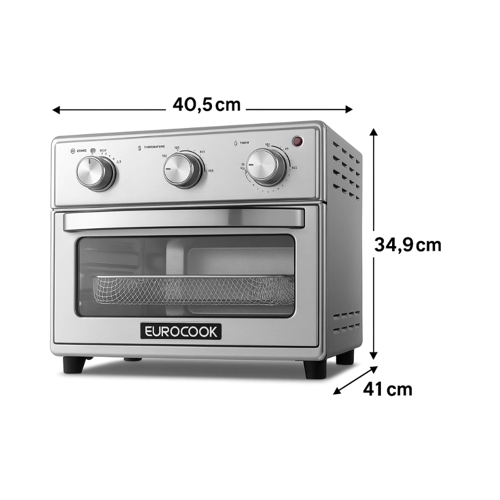 Descubrí la combinación perfecta entre funcionalidad y diseño con el Horno Eléctrico Freidor Eurocook EC-FO16. Este horno eléctrico de mesa, con un elegante acabado inoxidable, es ideal para quienes buscan eficiencia y estilo en su cocina.