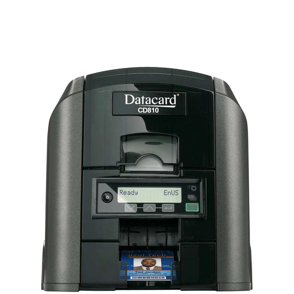 La impresora de tarjetas serieDatacard® CD810genera con eficiencia tarjetas de identificación de gran aspecto profesional en menos tiempo. Está diseñada y fabricada para manejar los grandes volúmenes y los requisitos establecidos para la emisión de tarjetas dentro del ámbito gubernamental a nivel estatal y local, el sector corporativo, el sector comercial y el sector educativo. Cuando sus demandas requieran velocidad, rendimiento y confiabilidad reunidas en una sola unidad compacta y eficiente, la impresora de tarjetas CD810 es la elección ideal.• Características Generales •- Impresión a una cara (Upgrade a dos caras).- Conexión por puerto USB y Ethernet.- Impresión con tinta UV.- Pantalla LCD en el frente.- Módulos opcionales: laminadora, impresión táctil, codificador de banda magnética, codificador de tarjetas inteligentes- Garantía de impresora y cabezal de impresión: 36 meses.- El insumo color rinde 500 impresiones.- Cada ribbon incluye kit de limpieza.- Incluye Soft TruCredendial en versión Express.• Características Técnicas •Resolución de impresión:Modo Estándar: 300x300 puntos por pulgada (textos, código de barras y gráficos)Modo Alta Calidad: 300x600 puntos por pulgada (texto mejorado, impresión de gráficos y código de barras); 300x1200 puntos por pulgada (texto mejorado e impresión de código de barras)Velocidad de impresión:Impresión a todo color: Hasta 210 tarjetas por hora si es impresión de tarjetas de un solo lado (YMCKT*)Hasta 165 tarjetas por hora si es impresión de tarjetas de ambos lados (YMCKT-K*)Impresión monocromática: Hasta 1000 tarjetas por hora si es impresión de tarjetas de un solo lado (Black HQ*)Sistemas operativos:Windows 10 (32-bit and 64-bit), supported versions, Windows 8.2 (32-bit and 64-bit), Windows Server 2019, Windows Server 2016, Windows Server 2012 R2 (64-bit)SKU:506346-023-LA