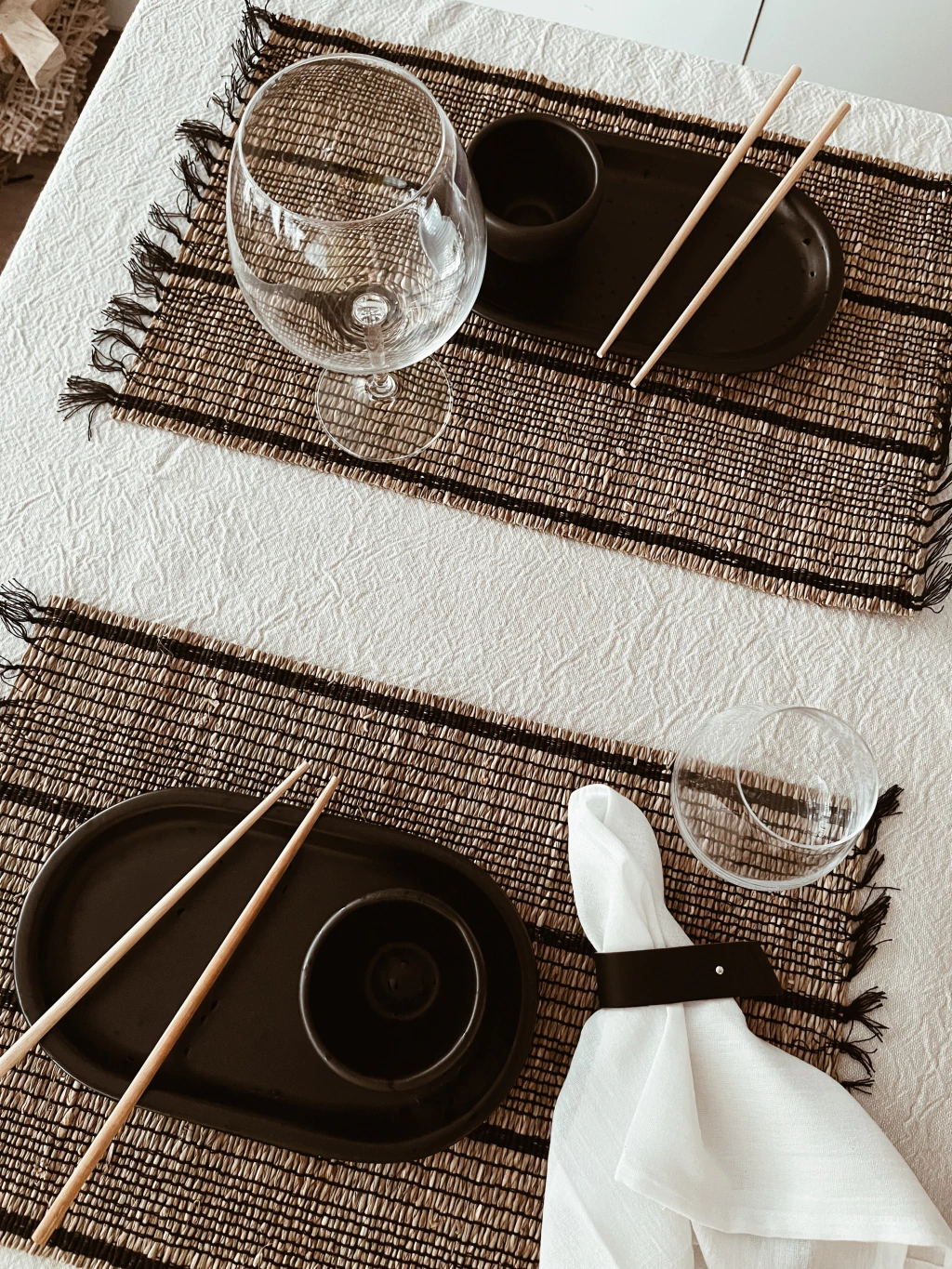 Individual de seagrass natural combinado con hilo negroMedida: 47cm x 30,5cm