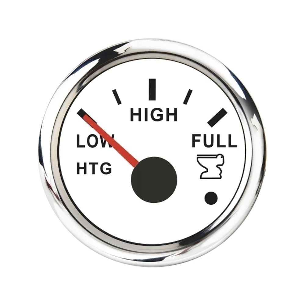 Medidor marino de esfera blanca de 52 mm de la serie W Pro: medidor de nivel de agua de 240 a 33 Ohmios para pontones, yates y motores fueraborda.