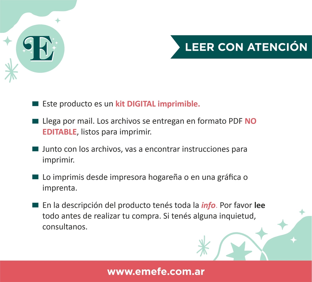 ARCHIVOS LISTOS para que imprimas en una gráfica o imprenta o en impresora hogareña. NO ABONAS ENVÍO porque llega via mail.