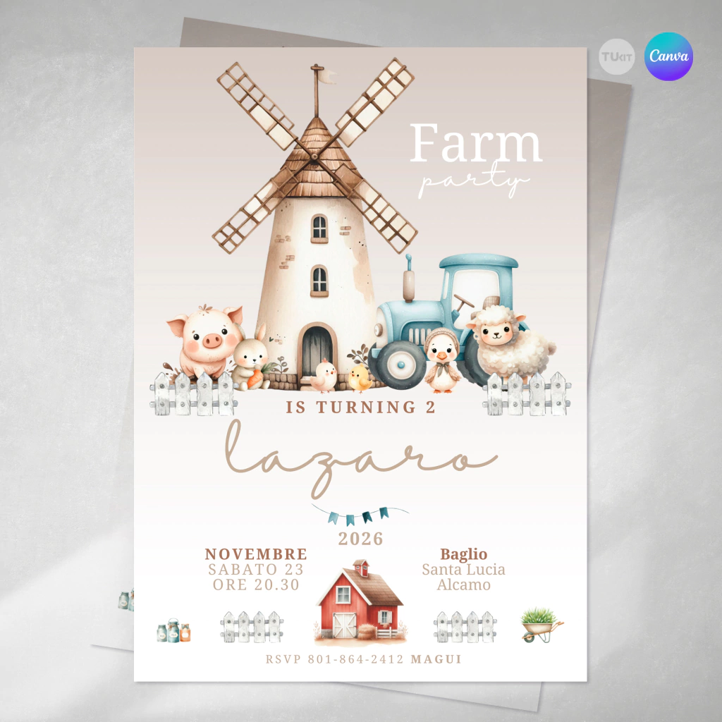 INVITACION ANIMALES DE LA GRANJAPODES EDITAR FACILMENTE CON CANVAEL TEXTO de: nombre, fecha y lugar (fuente y color). No la imagen.INCLUYE 1 ARCHIVO PDF - link invitación whatsappINCLUYE 1 ARCHIVO PDF - link invitación 5x7 inchesGracias por tu compra!