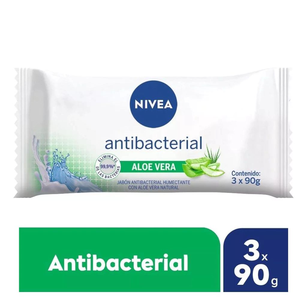 Jabón de Tocador Nivea Antibacterial Aloe Vera 3 x 90grsElimina el 99,9% de las bacterias