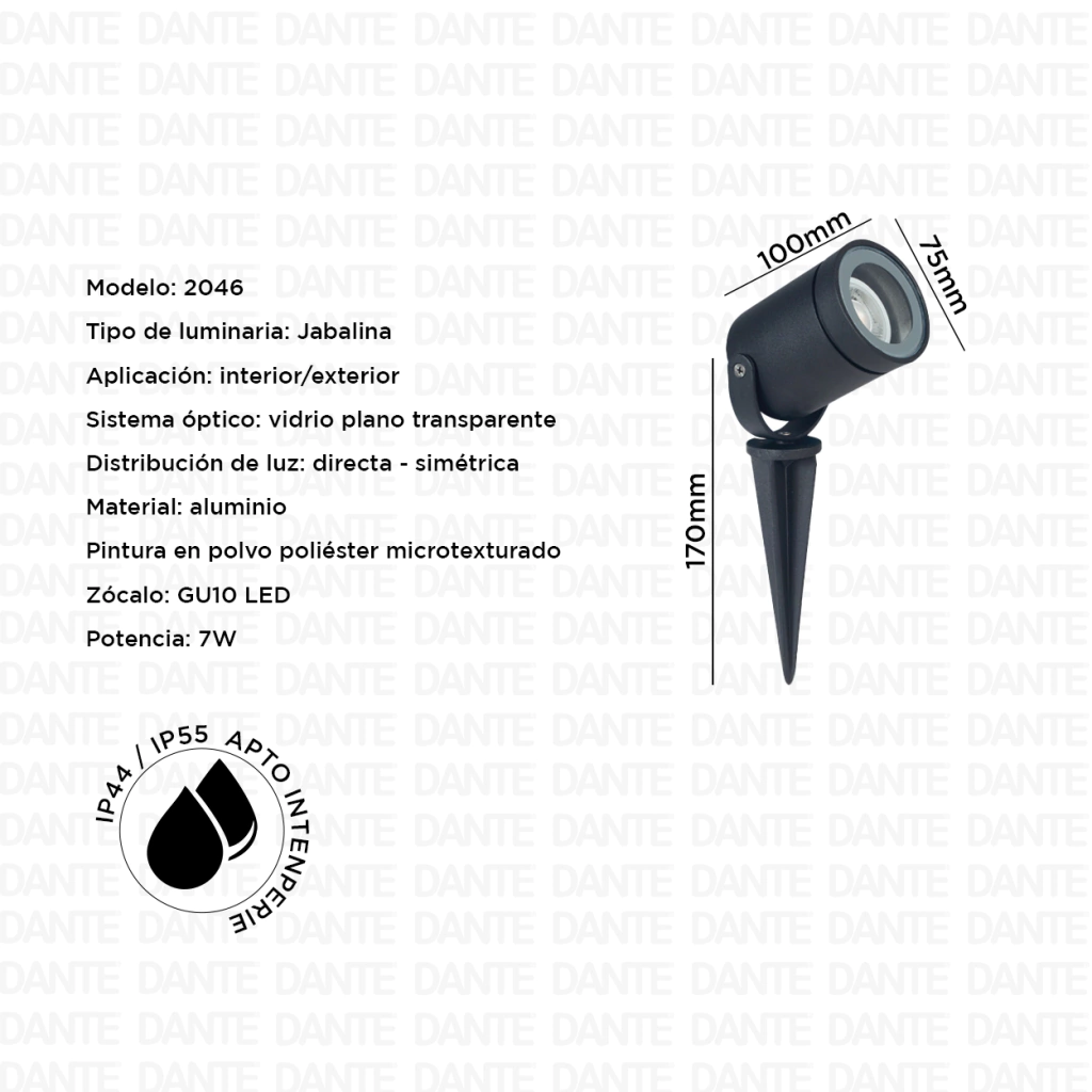 DescripciónEstaca simple diseñada para iluminar tus espacios exteriores con distinción y durabilidad. Esta versátil jabalina es direccionable, lo que significa que podés ajustar la luz a donde la necesites. Fabricado con aluminio resistente y protegido por una terminación de pintura en polvo poliéster microtexturado, este aplique no sólo embellece, sino que también soporta las inclemencias del tiempo. Con vidrio plano transparente que garantiza una distribución de luz directa y simétrica. Ideal para aplicar en canterosCaracterísticasTipo de luminaria:jabalinaAplicación:interior/exteriorSistema óptico:vidrio plano transparenteDistribución de luz:directa - simétricaMaterial:aluminioTerminación:pintura en polvo poliéster microtexturadoZócalo:GU10IP55NO INCLUYE LAMPARITA