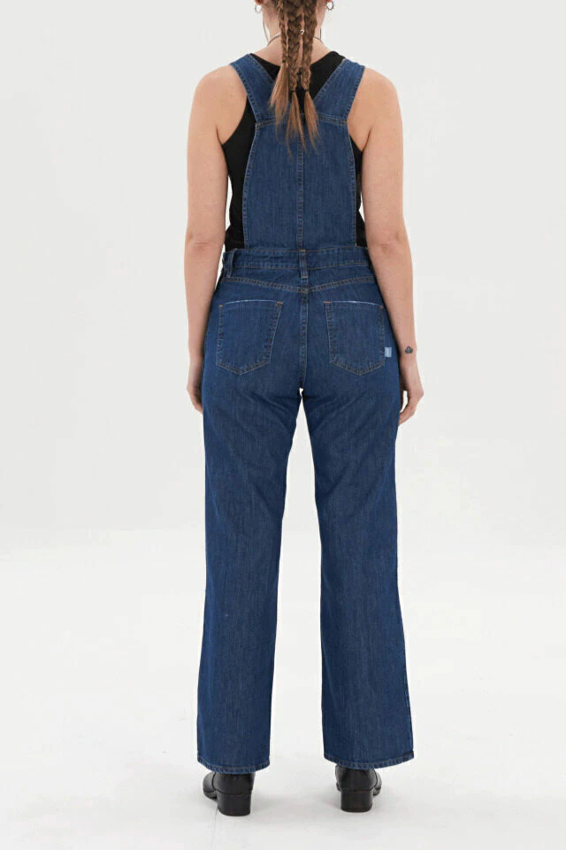 Jardinero de tiro medio confeccionado en denim 100% algodón con estructura cerrada y peso liviano.