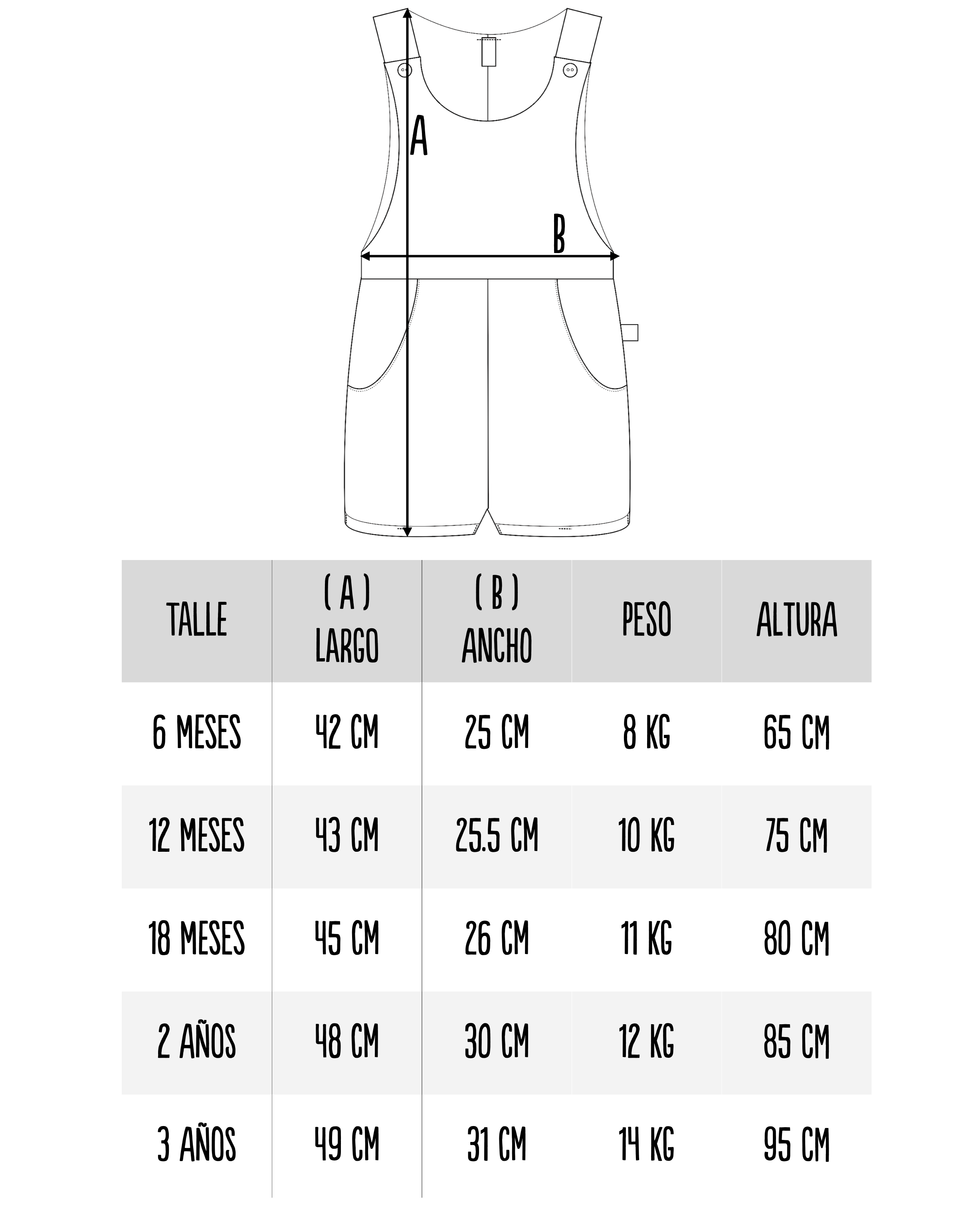 Para elegir el mejor talle te sugerimos chequear las medidas en la siguiente tabla, y ante la duda elegir el talle más grande. ¡Crecen tan rápido!