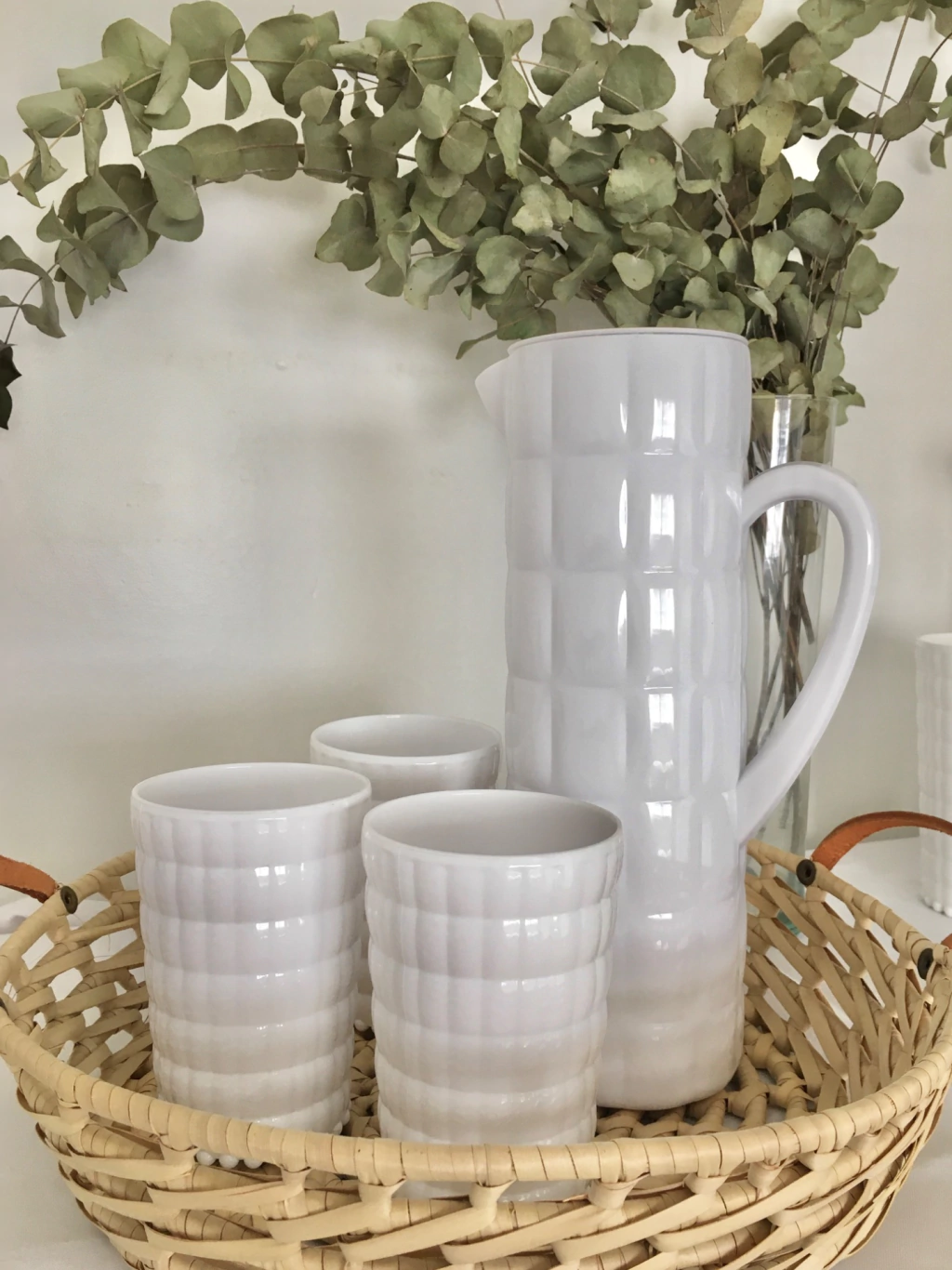 Jarra blanca de acrílico de la línea Taksim, tiene una capacidad de 1,5 lt.