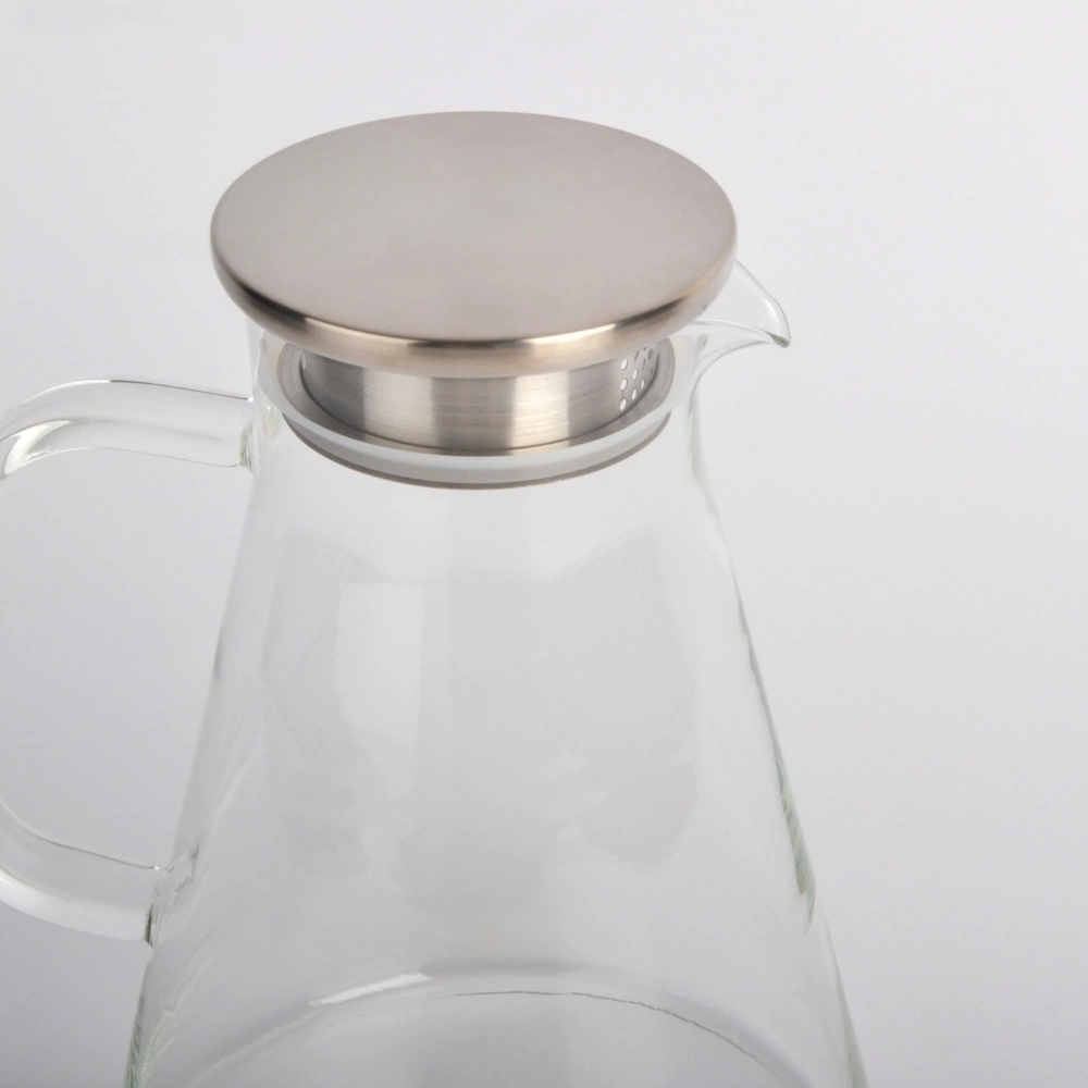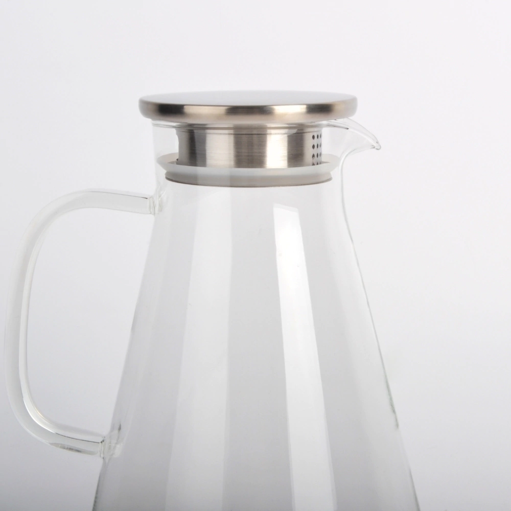JARRA DE VIDRIO CONICA CON MANIJA Y TAPA DE ACERO CON FILTRO 1.8 LITROS