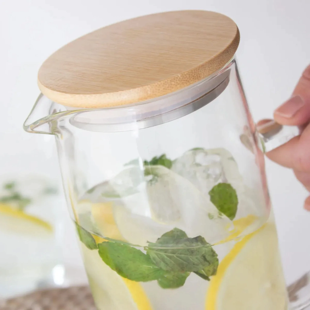 Jarra de Vidrio Design con Tapa de Bambu 1lt