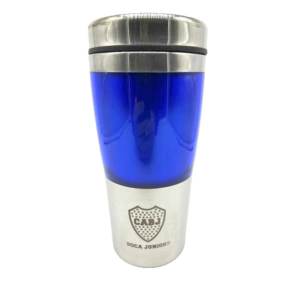 JARRO TERMICO BOCA JUNIORS CON TAPA 450 ML ALTO 18CM DIAMETRO 8CMGRABADO LASER