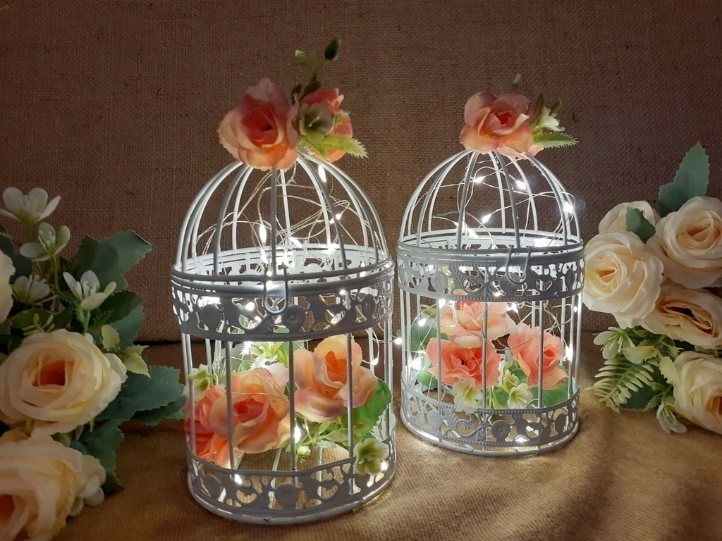 Jaula 16cm con Flores Y Luces ledcolor de flores a elección