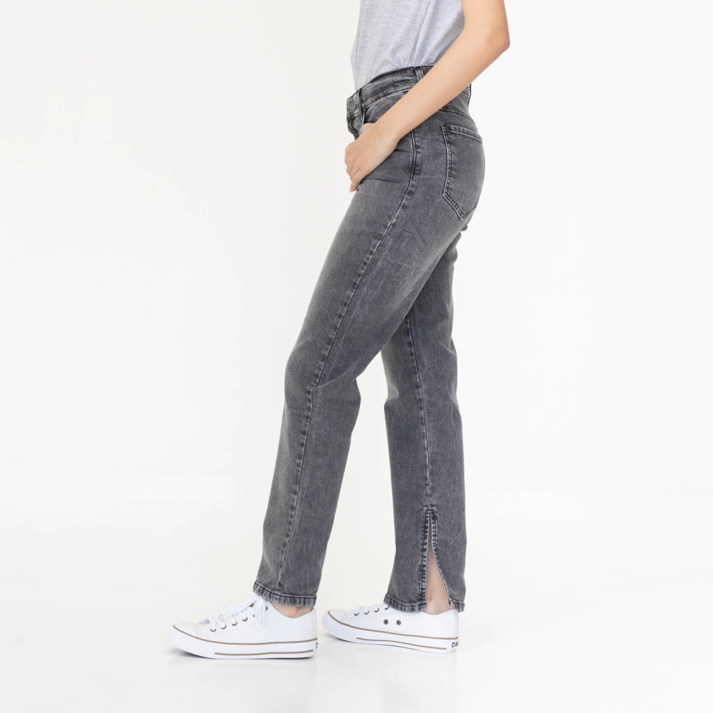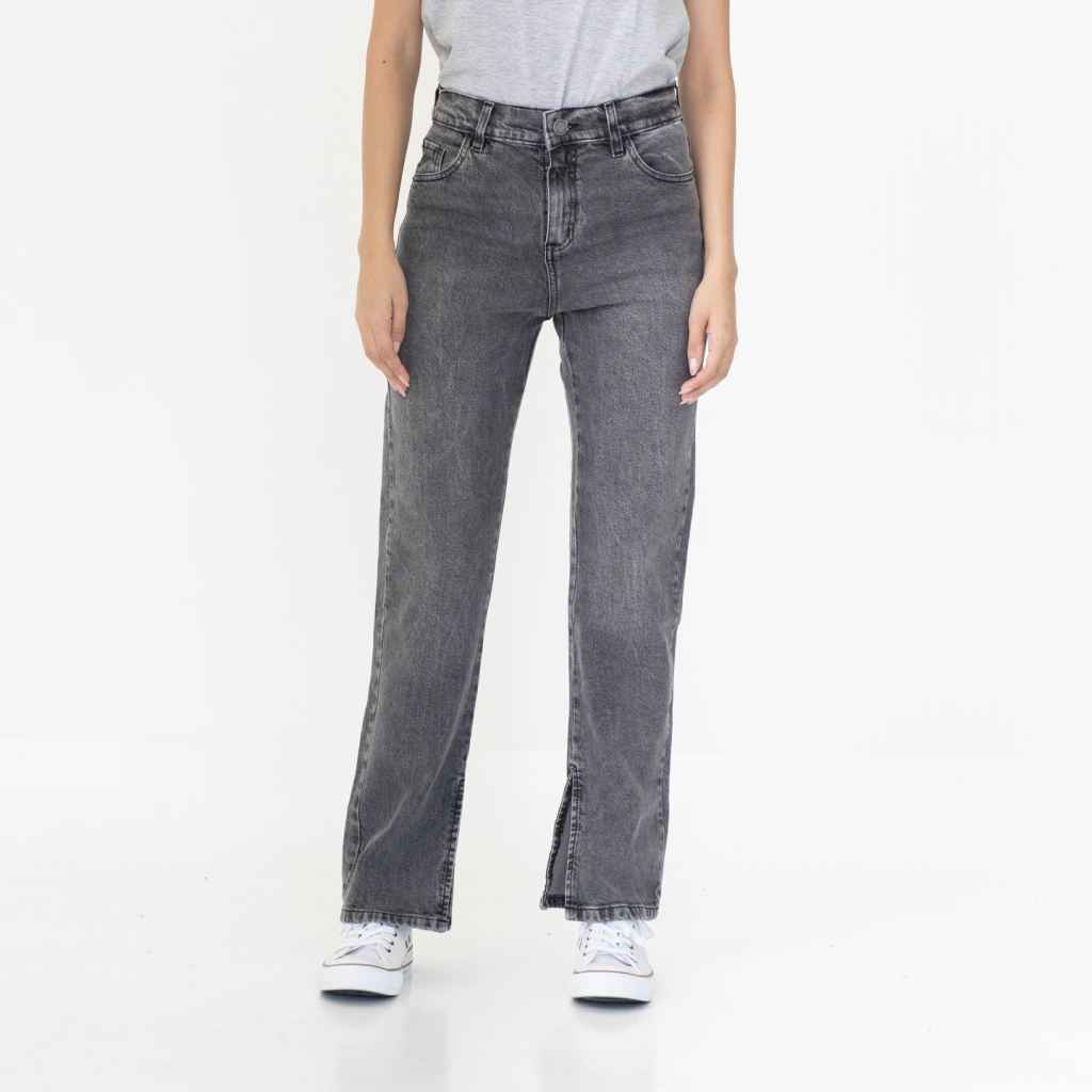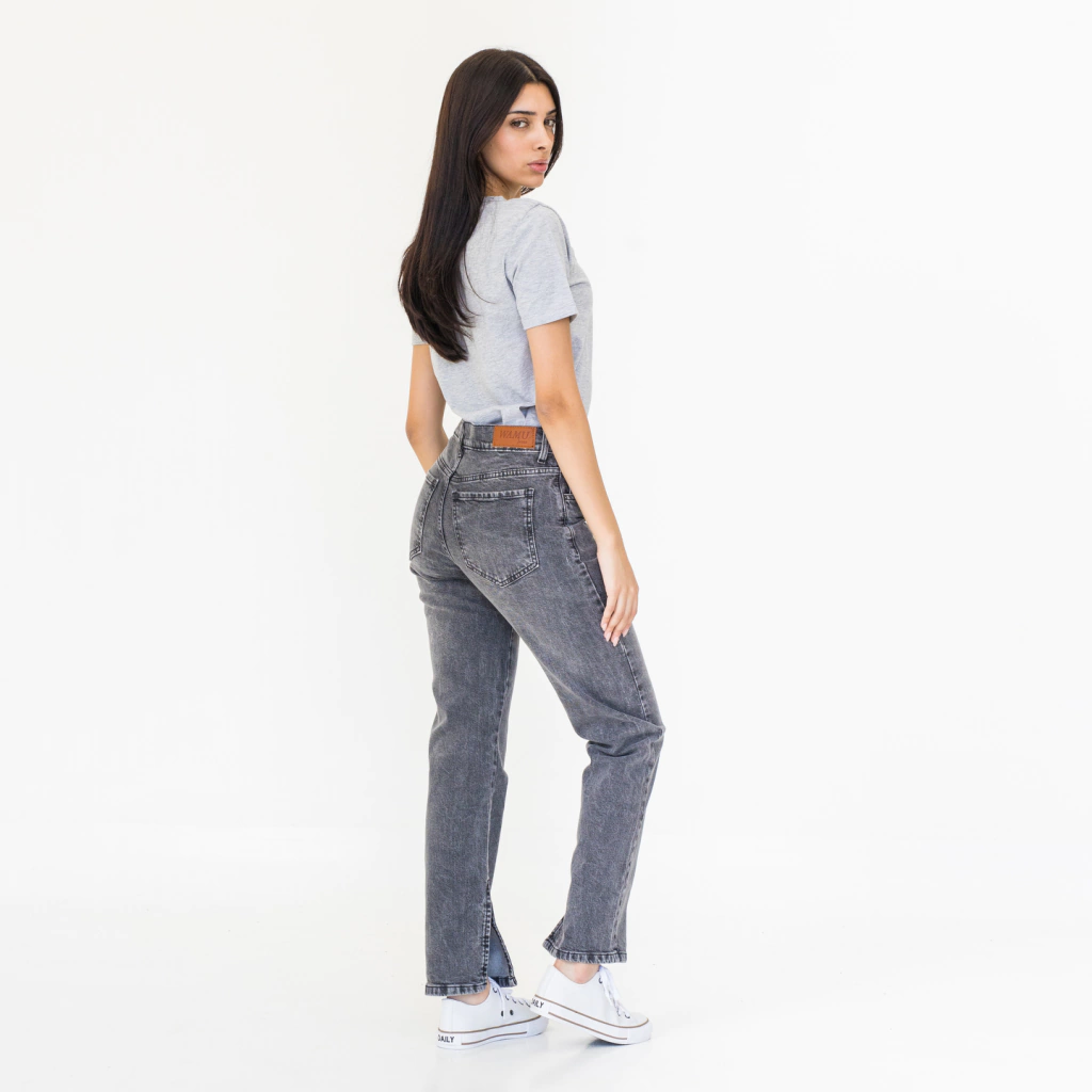 SKU: VA22413IJean Mom con Tajo en Bota. Combina el ajuste clásico del estilo mom con un toque moderno gracias a los tajos en la bota en tendencia. Confeccionado en denim de alta calidad, es perfecto para cualquier ocasión.Material: Denim resistente.Corte: Mom fit, ajustado en la cintura y cadera, más holgado en las piernas. Tiro altoDetalles: Tajo en la bota que añade un toque distintivo. Color gris nevado.Modelo usa talle 26Tabla de Talles (Son medidas aproximadas, tomarlas a modo de guía.Tomadas en superficie plana, solo del frente).TalleCintura (cm)Cadera (cm)Tiro (cm)Ancho de Bota (cm)Largo Total (cm)223033281397,52433,535291398,5263537291399283840301499,53039413116100,532414331161013441,54332161023645473416,5103