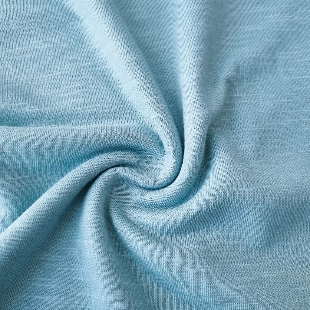 Este jersey flamé peinado es un tejido de punto liviano, suave y cómodo. Es un tejido diferenciado debido a la textura generada por el efecto del hilado flamé. Es una tela mezcla algodón/poliéster fina y fresca, ideal para prendas de primera piel. Es muy usado para la confección de prendas como remeras, camisetas, remerones y vestidos, ropa interior y ropa de bebes.
