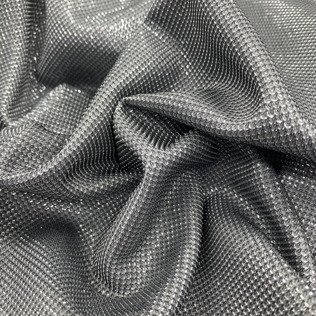 El Jersey Metálico es una tela con un acabado brillante y llamativo que se destaca por su apariencia futurista y moderna. Su superficie está compuesta por pequeños detalles metálicos que reflejan la luz de manera espectacular, dándole un efecto visual único. La mezcla de poliéster y elastano proporciona una textura suave y ligeramente elástica, lo que permite que se ajuste cómodamente al cuerpo. Esta tela es ideal para confeccionar prendas de moda que buscan destacar, como vestidos de fiesta, tops, leggins, y accesorios, así como para proyectos de decoración que requieren un toque metálico y moderno.